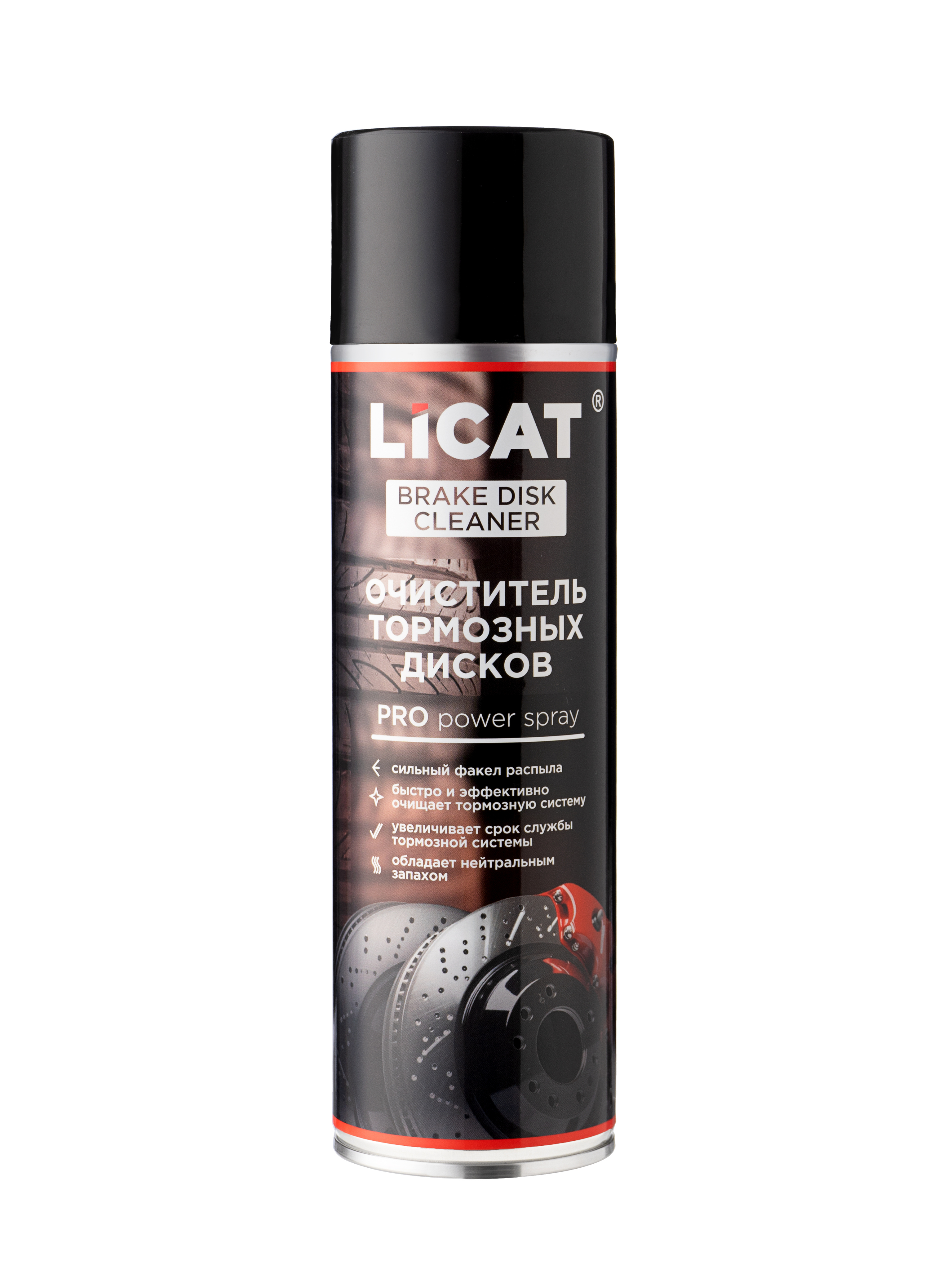 Профессиональный Очиститель тормозных дисков Licat PRO – уникальное средство, которое гарантирует эффективность работы и долговечную службу тормозных механизмов. Усиленная формула аэрозольного очистителя тормозных дисков действует безотказно, быстро смывая все виды загрязнений и обезжиривая поверхность. Очиститель тормозов Licat PRO удаляет сажевые, масляные и дорожные загрязнения с деталей тормозных систем быстро очищает и обезжиривает тормозные механизмы восстанавливает эффективную работу сцепления и системы ABS устраняет скрип повышает эффективность торможения быстро испаряется, не оставляет следов увеличивает срок службы тормозных механизмов. Очиститель тормозных дисков Licat PRO можно использовать как универсальный очиститель и обезжириватель деталей. Аэрозоль оснащён клапаном профессионального уровня, позволяющим равномерное распыление независимо от положения.